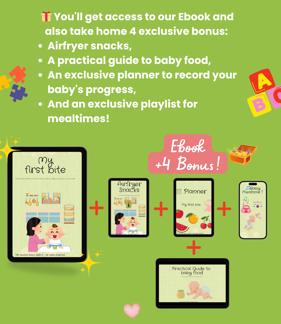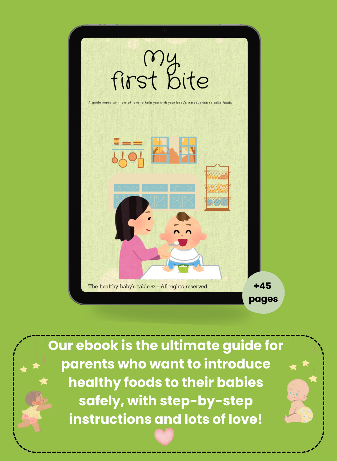 The ebook focuses on introducing solid foods, ideal for babies aged 6 months and older.